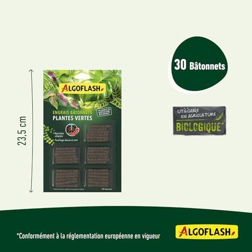 Algoflash Bâtonnets Engrais Plantes Vertes, Utilisable en Agriculture Biologique – 30 Bâtonnets, Marron