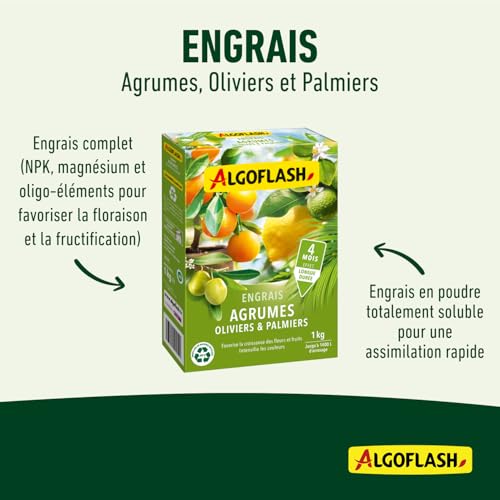 ALGOFLASH Engrais Agrumes, Olivers, Palmiers, Longue Durée, 1 kg, MED1R