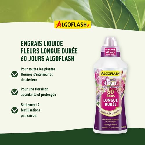 Spécification: Algoflash Engrais Fleurs Longue Durée 60 jours, Bouchon Doseur Inclus, 750 ml, ALD750