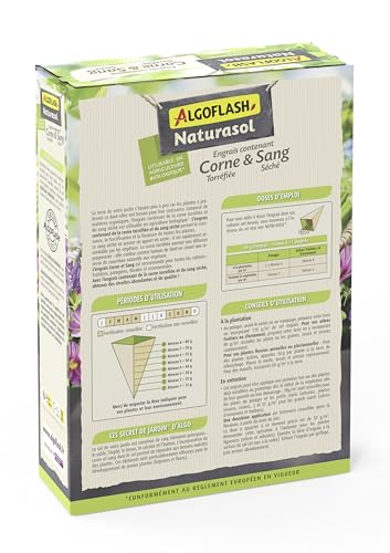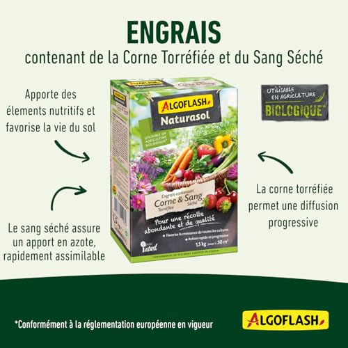 Spécification: ALGOFLASH NATURASOL Engrais contenant de la Corne torréfiée et Sang Séché, Jusqu’à 50m² , 1.5 kg, ACORNBIO15, Vert
