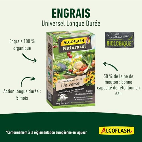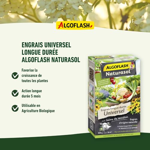 Spécification: ALGOFLASH NATURASOL Engrais universel longue, Jusqu’à 16m², 800gr, AUNIBIO8, Vert