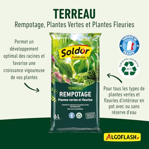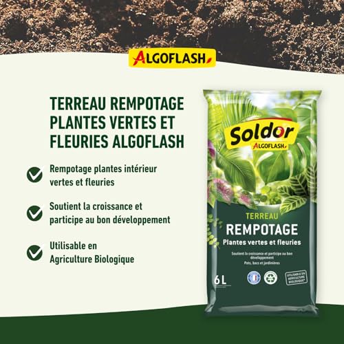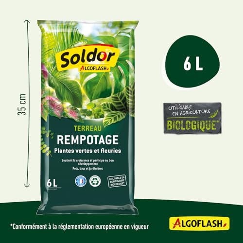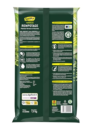 Spécification: ALGOFLASH Terreau Rempotage Plantes Vertes et Plantes Fleuries, UAB, Prêt à l’Emploi, Fabriqué en France, 6 L,TREMP6