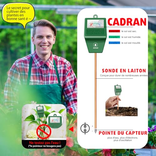 Spécification: Antonki 2 Pièce Testeur Humidité Plantes, Hygromètre Plante, Testeur Hydrometre du Sol Mesureur d’eau du Sol Capteur Moisture pour Jardin, Ferme, Plantes (sans Piles)