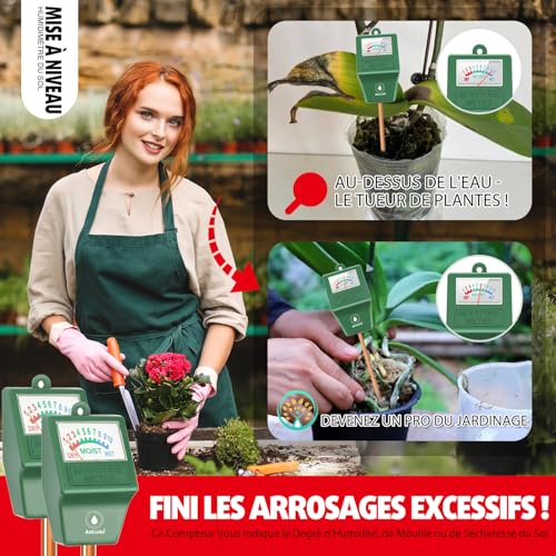 Antonki 2 Pièce Testeur Humidité Plantes, Hygromètre Plante, Testeur Hydrometre du Sol Mesureur d’eau du Sol Capteur Moisture pour Jardin, Ferme, Plantes (sans Piles)