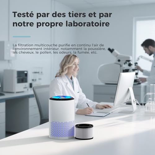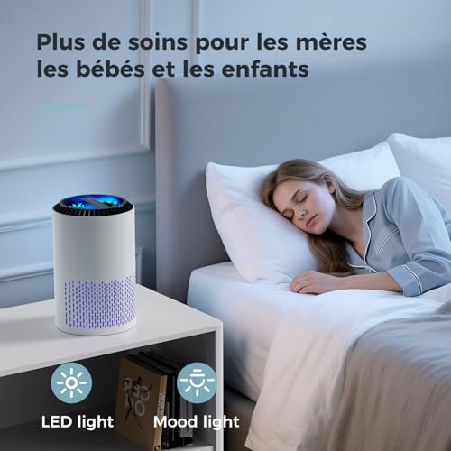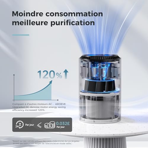 Spécification: AROEVE Purificateurs d’Air Pour Chambre et Maison, 22dB Purificateur d’Air H13 HEPA Fumée Pellicules Poils Odeur Purificateur d’Air Avec Contrôle de Vitesse Pour Chambre Bureau, DH-JH01A, Blanc