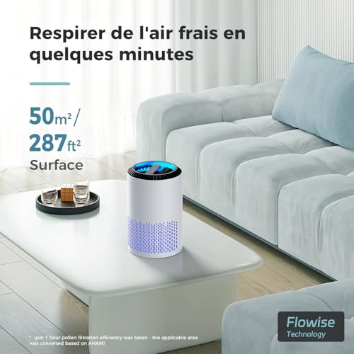Filtration Impressionnante Des Particules : Grâce à sa technologie d’admission d’air à 360 degrés et à son filtre HEPA H13, le purificateur d’air AROEVE peut rafraîchir l’air toutes les heures dans des pièces allant jusqu’à 50 m² / 538 ft². Il peut filtrer les particules telles que la fumée, le pollen, les squames, les cheveux et bien plus encore, améliorant ainsi la qualité de l’air et favorisant une meilleure santé et un plus grand bien-être pour vous.