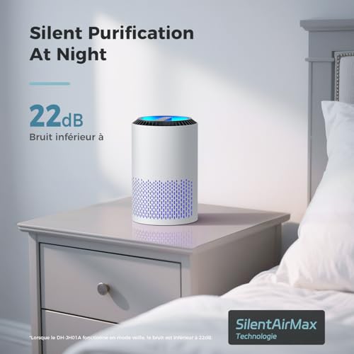 AROEVE Purificateurs d’Air Pour Chambre et Maison, 22dB Purificateur d’Air H13 HEPA Fumée Pellicules Poils Odeur Purificateur d’Air Avec Contrôle de Vitesse Pour Chambre Bureau, DH-JH01A, Blanc