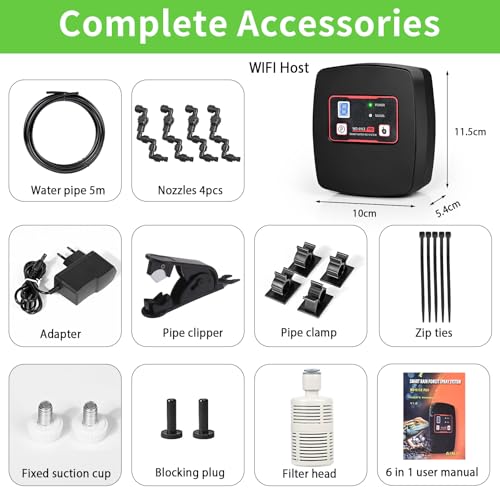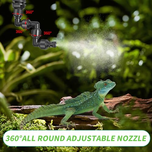 【2】Notre système de brumisation intelligent pour reptiles avec 4 buses réglables à 360° pour hydrater rapidement votre réservoir de reptiles. Par rapport aux humidificateurs pour reptiles ordinaires, nos buses ont été améliorées pour résoudre le problème des fuites et des buses facilement cassées. Les mini-buses combinées améliorées ont un bon effet d’atomisation et un long cycle d’entretien.