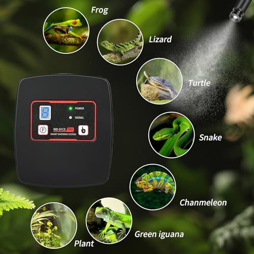 Spécification: Brumisateur Terrarium, Glovios Humidificateur Terrarium avec Minuterie et 4 Arroseur de Brouillard Réglables 360°, Système de Brumisation Terrarium pour Amphibiens Reptiles Plantes Fleurs