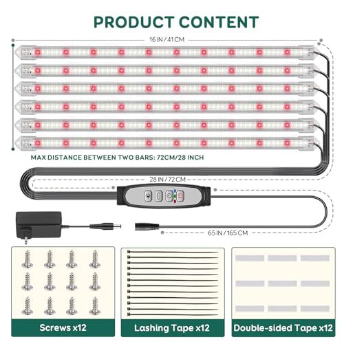 Spécification: COKOLILA 6 Barres Lampe pour plantes LED, Sunlike Lampe Horticole 360 LED avec minuterie Auto ON/Off 6/12/18H, 3 modes d’éclairage