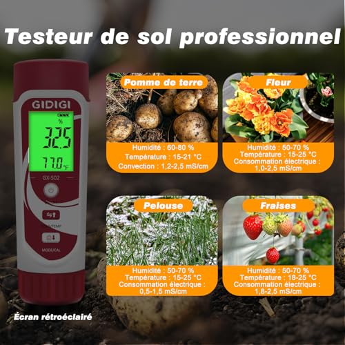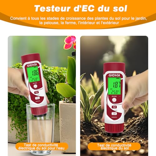 👍{Mesureur de conductivité électrique professionnel pour sol et eau} Le compteur de conductivité électrique du sol GIDIGI est non seulement adapté pour le jardin, la cour, la pelouse, la ferme et les plantes en pot, mais aussi pour l’hydroponique et d’autres tests de conductivité électrique de l’eau. Ceci est particulièrement important pour les plantes sensibles qui sont très sensibles à l’excès ou à la carence en eau, et permet également de vérifier si les solutions nutritives hydroponiques répondent aux critères.