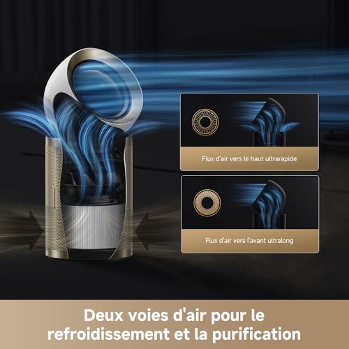 Refroidissement et purification avancés avec double flux d’air: Profitez d’une de l’air tout au long de l’année grâce à une sortie d’air à deux voies, vers le haut et vers l’avant, à utiliser comme purificateur d’air et comme ventilateur; La technologie Dualflow Modulation améliore la qualité de l’air par temps chaud ou dans les environnements où la circulation de l’air est insuffisante
