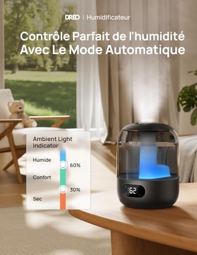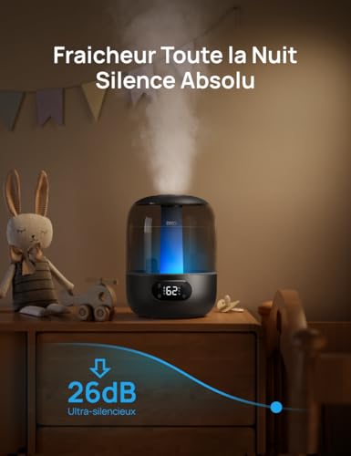 𝘿𝙤𝙧𝙢𝙚𝙯 𝙥𝙧𝙤𝙛𝙤𝙣𝙙é𝙢𝙚𝙣𝙩, 𝙣𝙪𝙞𝙩 𝙖𝙥𝙧è𝙨 𝙣𝙪𝙞𝙩 : profitez d’un sommeil serein avec l’humidificateur d’air ultra-silencieux de DREO à 26 dB (en mode sommeil), conçu pour le confort ultime de votre bébé. Personnalisez votre espace avec un éclairage d’ambiance réglable qui peut être allumé ou éteint selon les besoins.