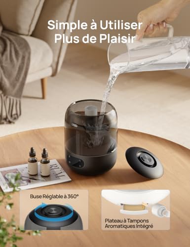 𝘾𝙤𝙣𝙛𝙤𝙧𝙩 𝙙𝙚 𝙨𝙥𝙖 à 𝙙𝙤𝙢𝙞𝙘𝙞𝙡𝙚 : transformez votre espace de vie en spa avec cet humidificateur à brume fraîche, doté d’un plateau pour huiles essentielles. Profitez de parfums apaisants associés à une humidité parfaite pour une tranquillité absolue.