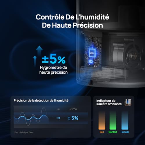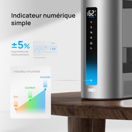 APP intelligente, simple et pratique : Garder un air frais et sain est beaucoup plus facile grâce à l’application Dreo. Consultez les relevés d’humidité en temps réel, suivez les niveaux d’humidité jusqu’à 30 jours, recevez et personnalisez des rappels de nettoyage intelligents.