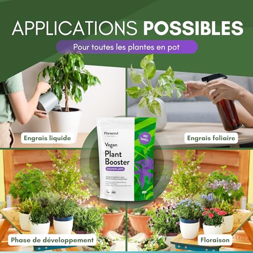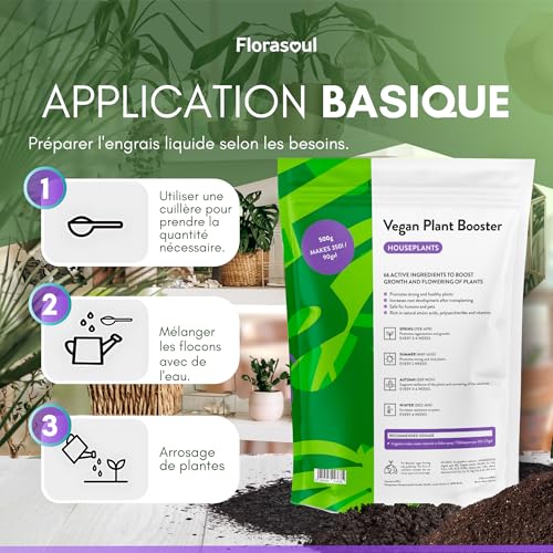 🪴 Engrais pour plantes d’intérieur vegan de haute qualité, directement depuis la source. Formule biologique pure, exempte de sous-produits animaux et de produits chimiques. Prouvé pour stimuler la croissance, la floraison, la vitalité et les couleurs vibrantes avec plus de 66 ingrédients naturels. Durée de conservation : 3 ans.