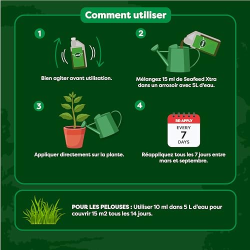 Spécification: Envii SeaFeed Xtra – Engrais Universel Liquide Organique d’Algues – Aliments Plantes Intérieur et Extérieur – 1 L fait 500 L