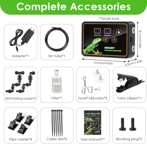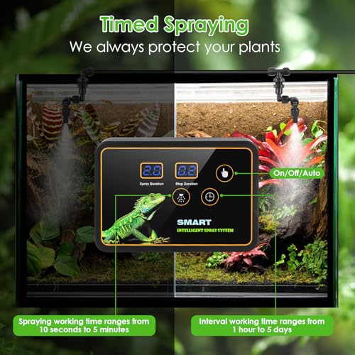 Spécification: GuKKK Brumisateur Terrarium Reptiles Plantes,Système Humidificateur Plantes D’intérieur avec Minuterie et Arroseur de Brouillard Réglables 360°,Système de Brumisation Terrarium pour Amphibiens Fleurs