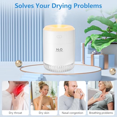 Humidificateur chambre à coucher USB humidificateur Mini Humidificateur avec 2 Mode Brume Réglable avec LED Veilleuse pour la maison, le yoga, le bureau (White)