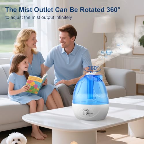 Spécification: Humidificateur d’air Bébé 2,5L, Humidificateur d’air Chambre avec LED, Grande Brume 300 ml/h, 28 dB Ultrasons Silencieux, Rotation à 360 °, Humidificateurs pour Chambre Bureau, Enfants et Plantes