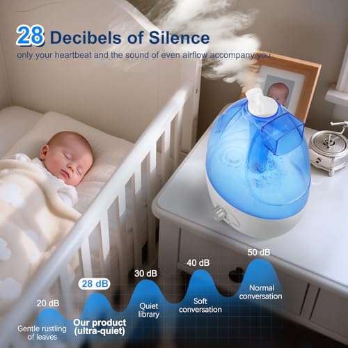 【Fonctionnement Silencieux】Avec un niveau sonore inférieur à 28 dB, ce humidificateur d’air chambre fonctionne silencieusement, garantissant des nuits paisibles et un environnement de travail ou de détente sans perturbation.