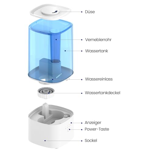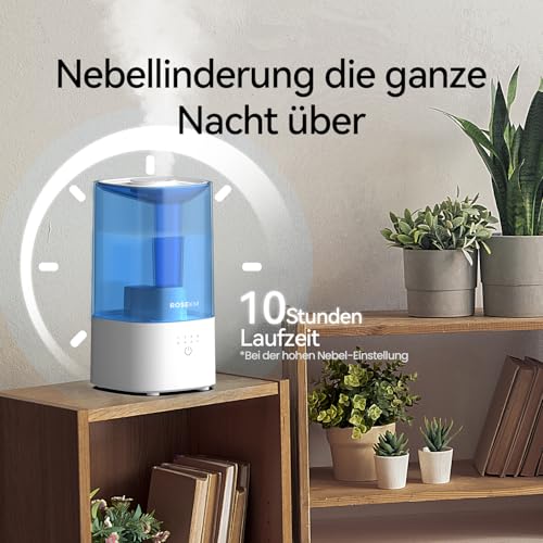 Spécification: Humidificateur de Chambre – Humidificateur à Ultrasons Silencieux à Brume Froide pour Plantes, Bébé, Chambre, avec Buse Rotative 360°, Sans Filtre, Arrêt Automatique, Bleu
