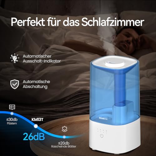 HUMIDIFICATEUR IDÉAL POUR LA CHAMBRE : Un seul remplissage suffit pour toute la nuit. Cet humidificateur à brouillard froid, d’une capacité de 2,0 litres (0,53 gallon), peut fonctionner silencieusement jusqu’à 24 heures en mode faible et s’éteint automatiquement lorsque le réservoir est vide.
