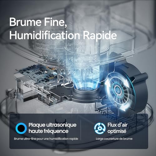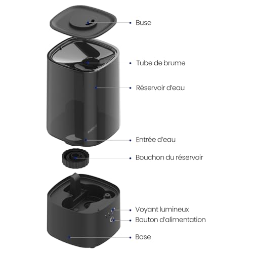 Contrôle simple et rapide : Appuyez légèrement sur le bouton d’alimentation du bout du doigt pour régler le niveau de brume. Un bip sonore confirme votre sélection, pour un contrôle simple et intuitif avec un seul bouton. Suivez cette méthode simple pour un fonctionnement fluide.