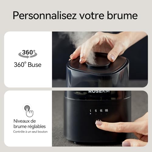 L’humidificateur à brume fraîche Rosekm est conçu pour une nuit de sommeil réparatrice. D’une capacité de 2,0 L, il fonctionne silencieusement jusqu’à 24 heures à faible débit et s’éteint automatiquement pour plus de sécurité. Son puissant débit de 200 ml/h vous permettra de soulager rapidement la sécheresse de l’air. Compact et polyvalent, il est idéal pour la maison, le bureau ou la chambre d’enfant. Réglez la brume selon vos envies grâce à une simple pression sur un bouton et une buse à 360°. Bénéficiant d’une garantie de 5 ans, profitez de la tranquillité d’esprit avec la solution d’humidification fiable de Rosekm.