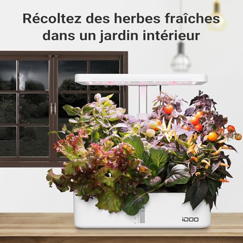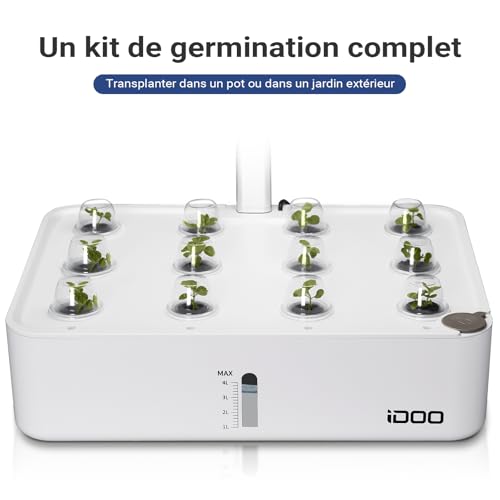 iDOO Potager Interieur, Hydroponie, Kits et Systèmes pour Cultures hydroponiques, Hydroponie Kit Complet, 12 Dosettes, Minuteur Automatique, Hauteur Réglable, pour la Cuisine de la Maison, Blanc