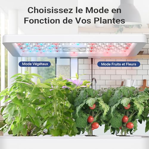 Système hydroponique automatique: Arrosage entièrement automatique et automatique des potagers d’intérieur. Le rapport de la lumière rouge et bleue et la durée d’éclairage sont différents selon les différents modes, correspondant aux différents stades de croissance des plantes