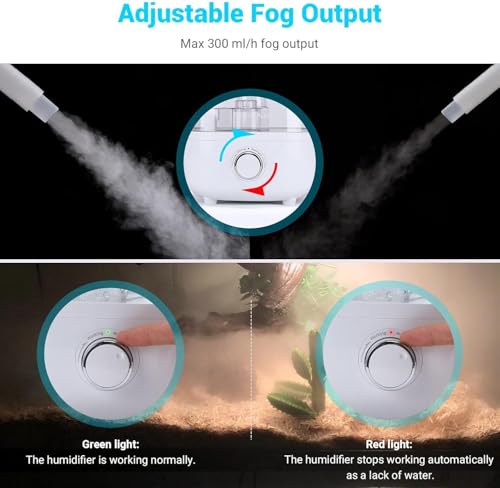 Largement Utilisé: L’humidificateur est équipé d’un tube de pulvérisation externe extensible de 16,5 pouces à 63 pouces, et s’utilise avec la plupart des terrariums et aquariums. Cet humidificateur convient aux personnes qui s’occupent de reptiles, d’amphibiens et de plantes humides.