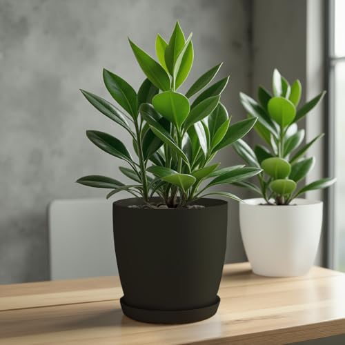 Spécification: KADAX Pot de Fleurs 30 cm en Plastique avec Soucoupe et Finition Mate Élégante, Cache-Pot pour Une Décoration Intérieure Raffinée et Moderne (Anthracite)