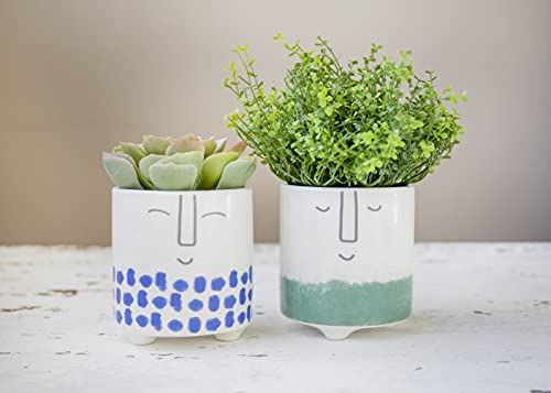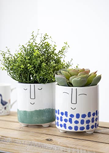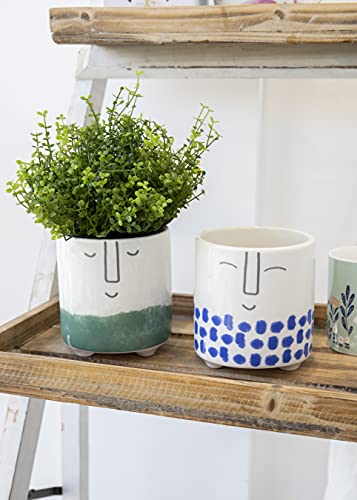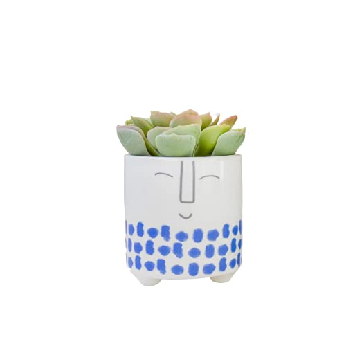 Spécification: KC BLUE KitchenCraft – Pot de Fleurs pour Petites Plantes d’Intérieur, Dolomite, Motif Visage/Bleu Tacheté, 10 x 10 x 11 cm