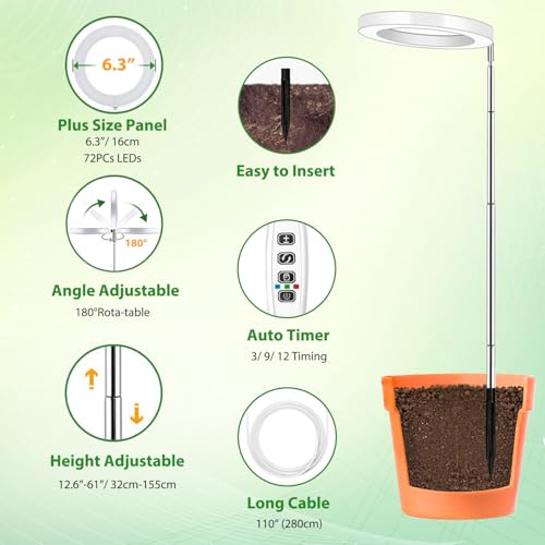 Spécification: Lampe pour plantes, 72 LED, spectre complet, jusqu’à 152 cm de hauteur, minuterie automatique, 10 niveaux de luminosité, 3 modes de couleur, lampe de culture, idéale pour les grandes et les