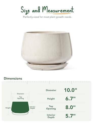 Spécification: LE TAUCI Pot de Fleurs en Céramique, Pot pour Plantes 25 cm avec Trou de Drainage et Soucoupe, Pot de Fleurs d’Intérieur Durable pour Décoration Moderne de la Maison, Beige