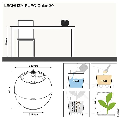 Spécification: Lechuza – Pot de Fleurs d’Extérieur et d’Interieur – Puro Color – Réserve d’Eau Intégrée – Coloris Blanc – Ø 20 x 16 cm