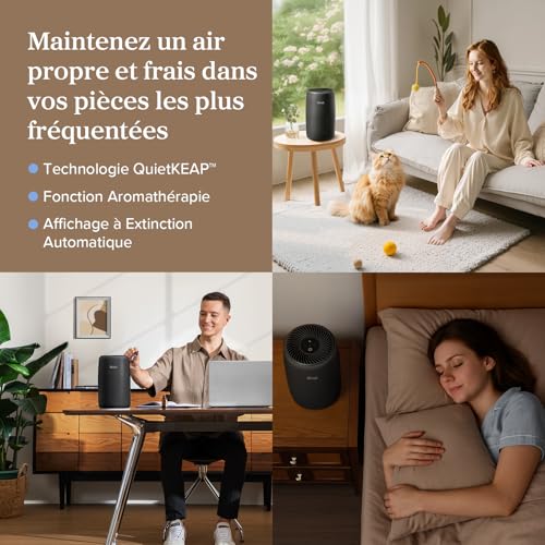 Purificateur d’air LEVOIT avec filtre HEPA, purificateur d’air avec aromathérapie, silencieux et faible consommation d’énergie 7 W, Core Mini Noir