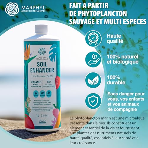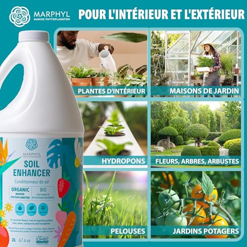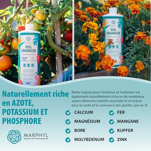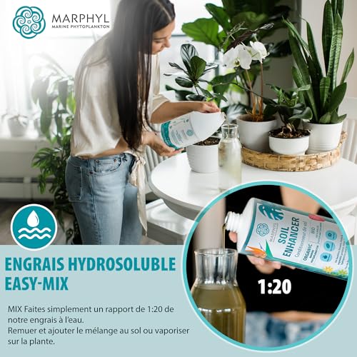 MARPHYL Engrais liquide biologique – Pour plantes d’intérieur et d’extérieur – Riche en nutriments – Améliore le sol pour jardin, fleurs, légumes, succulentes, bambou, culture hydroponique.