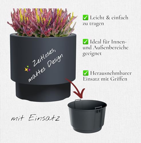 Pot de fleurs rond avec insert – Pot de fleurs moderne mat – Résistant au gel et aux UV – Anthracite – Taille XXL – Diamètre 47 cm – Pour l’intérieur et l’extérieur
