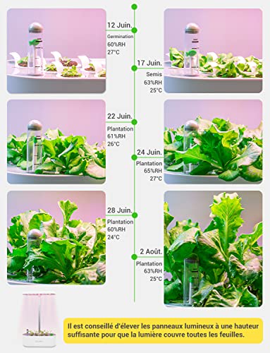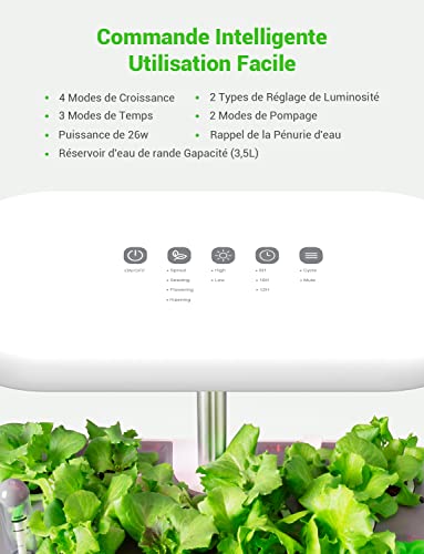 Spécification: Potager d’intérieur 12 Pots Jardin Interieur avec 4 Modes de Croissance Intelligents, Smart Garden de 26W Lumière LED, Hauteur Réglable 20-50cm