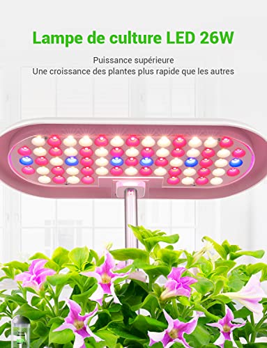 [Lumière LED à spectre complet] Le potager intérieur hydroponique est équipé d’une lumière LED à spectre complet de 26W qui simule la lumière naturelle et favorise la photosynthèse par tous les temps pour accélérer la croissance de vos plantes. Cela signifie également que vous pouvez placer les plantes que vous souhaitez faire pousser n’importe où à l’intérieur