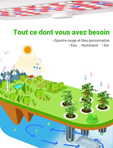 [4 Modes préréglés entièrement automatiques et hauteur réglable] Le jardin intérieur dispose de 4 modes préréglés avec différents ratios de lumière rouge et bleue et des temps d’éclairage entre les différents modes, correspondant aux 4 différents stades de croissance des plantes. En outre, la hauteur de la lumière est réglable de 20 à 50 cm afin de s’adapter à la hauteur des plantes en croissance