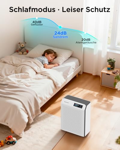 Spécification: Purificateur d’air avec filtre HEPA H13 et UVC – Purificateur d’air Puissant-32W Économies d’énergie-2 Modes-Silencieux<30dB - Contrôle via Wi-Fi et App Idéal pour Chambre Bureau