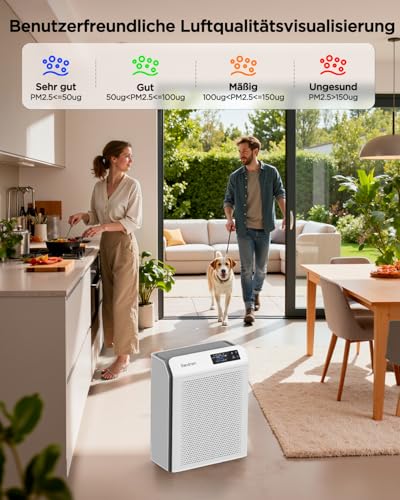 【Purification d’air Haute Performance avec filtre HEPA H13】Filtre élimine jusqu’à 99,95% des particules microscopiques. Étape 1: Capture efficacement les cheveux, le pollen et squames. Étape 2: Filtre les PM2.5 et capture les particules en suspension dans l’air d’une taille aussi petite que 0,1 à 0,3 micron. Étape 3: Filtre à charbon actif : Élimine efficacement les odeurs de la cuisine et du salon. Particulièrement utile pour les personnes allergiques et les familles avec animaux de compagnie.