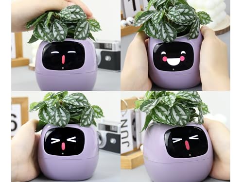 Spécification: Robot de Plantation Intelligent avec émojis pour l’entretien des Plantes, Charmant Compagnon des Plantes avec Interaction gestuelle complète, Pot de Jardin, Cadeau pour Le Bureau (Jaune)