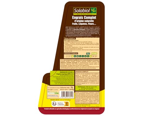 Spécification: SOLABIOL Engrais Complet Liquide – 1L – Jusqu’à 100L De Solution – Engrais Universel – Tous Types De Cultures – Formulation Equilibrée – Facile A Doser – Utilisable En Agriculture Biologique SOLICOMP1