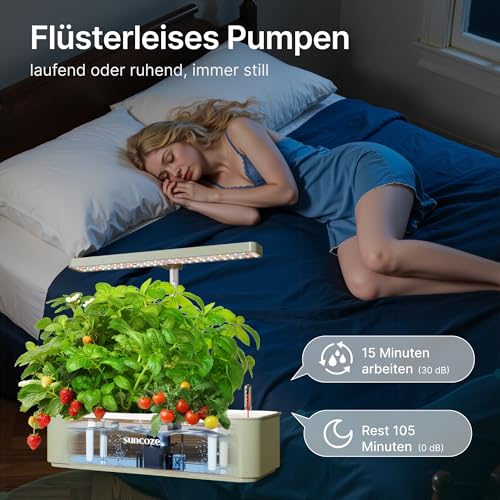 SUNCOZE Système de culture hydroponique – Kit de jardin d’herbes aromatiques d’intérieur avec lampe de croissance LED – 12 pods – Hauteur réglable – Réservoir d’eau de 4 l – Pompe intelligente