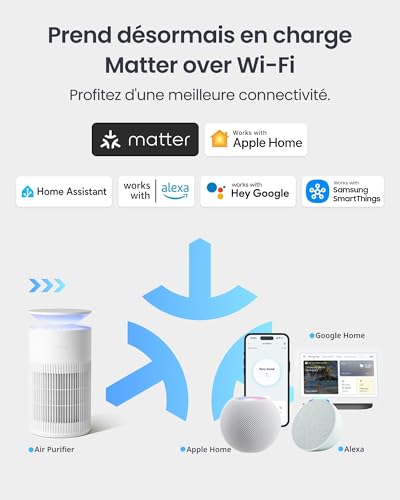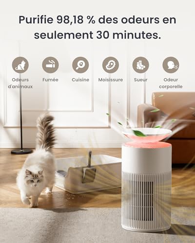 Spécification: SwitchBot Purificateur D’air Avec Application Et Veilleuse, CADR 400m³/h, Jusqu’à 83㎡, Filtre HEPA Élimine 99.97% Moisissures Poussières, Mode Sommeil 20dB (Purificateur)