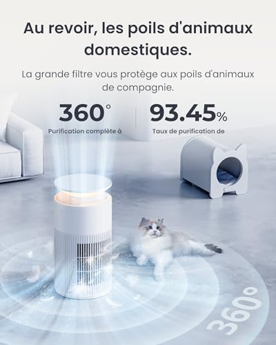 Design bien pensé, idéal pour les ménages avec des animaux de compagnie : Le purificateur d’air est équipé de câbles résistants à la mastication et d’une alimentation à basse tension, vous n’avez donc plus à vous inquiéter que vos animaux mordent les câbles. En mode animal de compagnie, l’appareil ajuste intelligemment la vitesse du flux d’air pour ne pas effrayer vos animaux. En mode sommeil, le bruit est réduit à 20 dB, offrant une nuit paisible à toute la famille.